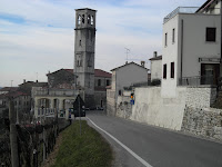 Arrivo ad un vigneto. Ciò mi rallegra, poichè dalle informazioni apprese indica che la via è quella giusta. A un quadrivio giro a destra su strada asfaltata. Attraverso la località di Ron, passo sotto un ponte e sbuco sulla strada che in poche centinaia di metri mi riporta in Piazza Marconi a Valdobbiadene.